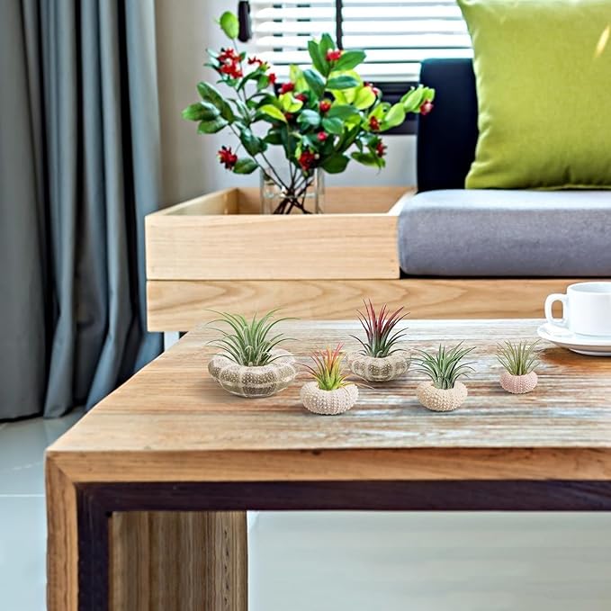 - For Air Plants: With holes in the bottom and top, our 5 pack of sea urchin shell plant pots are perfect for you to put all kinds of inIonantha tillandsia air plant, bringing your home a pop of fresh and artistic feeling. Please note that the air plants are NOT included in the package.