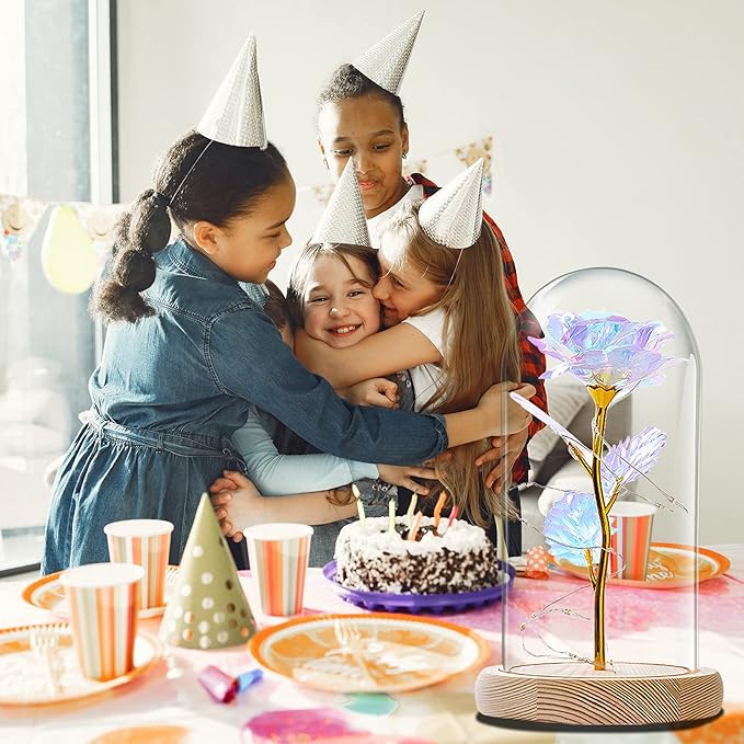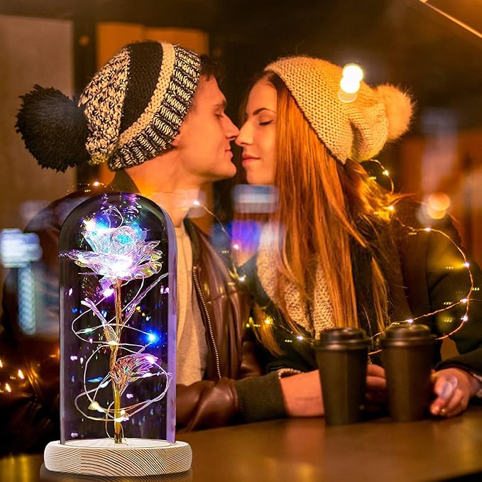 - Lighted Rose in Glass Dome,Colorful Artificial Flowers ,LED Rose Gift for Valentine's Day, Birthday,KUIGUITEI Day and Indoor Decoration