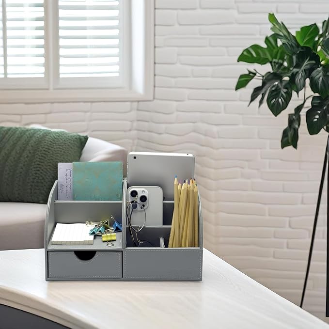 - Efficient Organization: Keep your desk and workspace tidy and organized with this desk organizer that has multiple compartments to store your pens, pencils, phone, remote control, envelopes, cosmetics, scissors and other home or office supplies. With a designated place for everything, you can keep track of all office supplies, and avoid the frustration of misplacing items