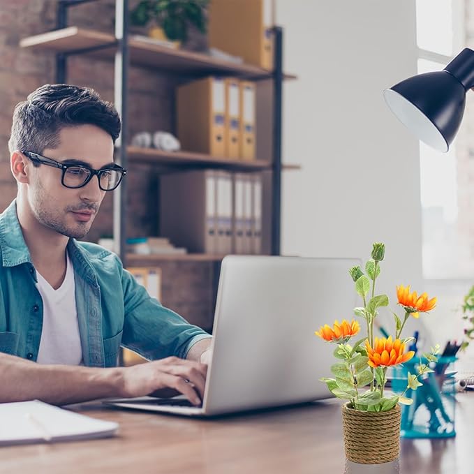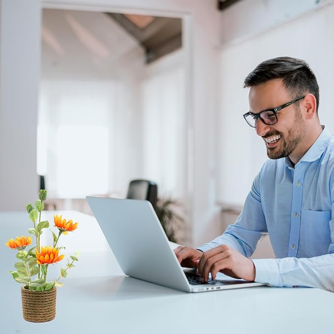 - 【RUSTIC & UNIQUE STYLE】The rustic brown rope-striped cement planter stands 3.5" tall and 3.7" in diameter, providing a stable and stylish base. AlphaAcc's thoughtful design makes this faux sunflower arrangement the perfect centerpiece, blending beautifully with farmhouse, boho, or modern home décor styles