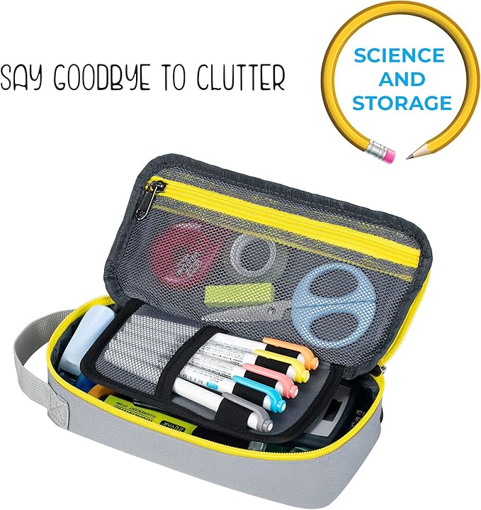 - PREMIUM MATERIAL: High quality advanced 1000D Oxford fabric with Anti Water Splashing and impermeable, scratch resistant. To provide more protection for your pencil case, the inner sponge padding can provide more soft support and protection to items inside; the double zippers with silicone heads are easier to grip