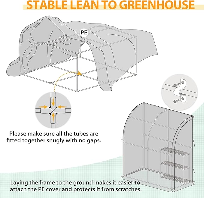 - WALL SUPPORT REQUIRED: Designed as a lean-to structure, this greenhouse must be installed against a solid, stable wall to ensure safety and durability, especially in windy or harsh weather conditions