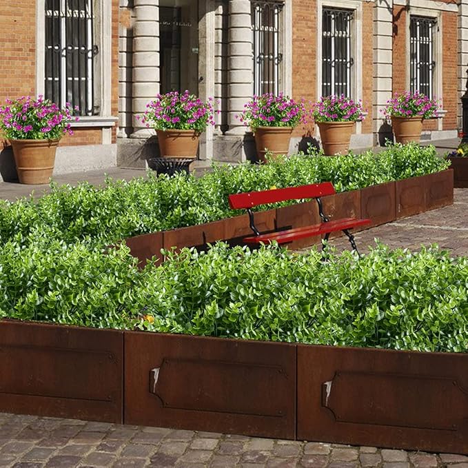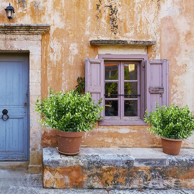6PCS Artificial Eucalyptus Plants,Fake Boxwood Shrubs UV Resistant No Fade Faux Plastic Greenery for Wedding Bridal Bouquet Indoor Outdoor Home Garden Kitchen Office Table Vase(Green)