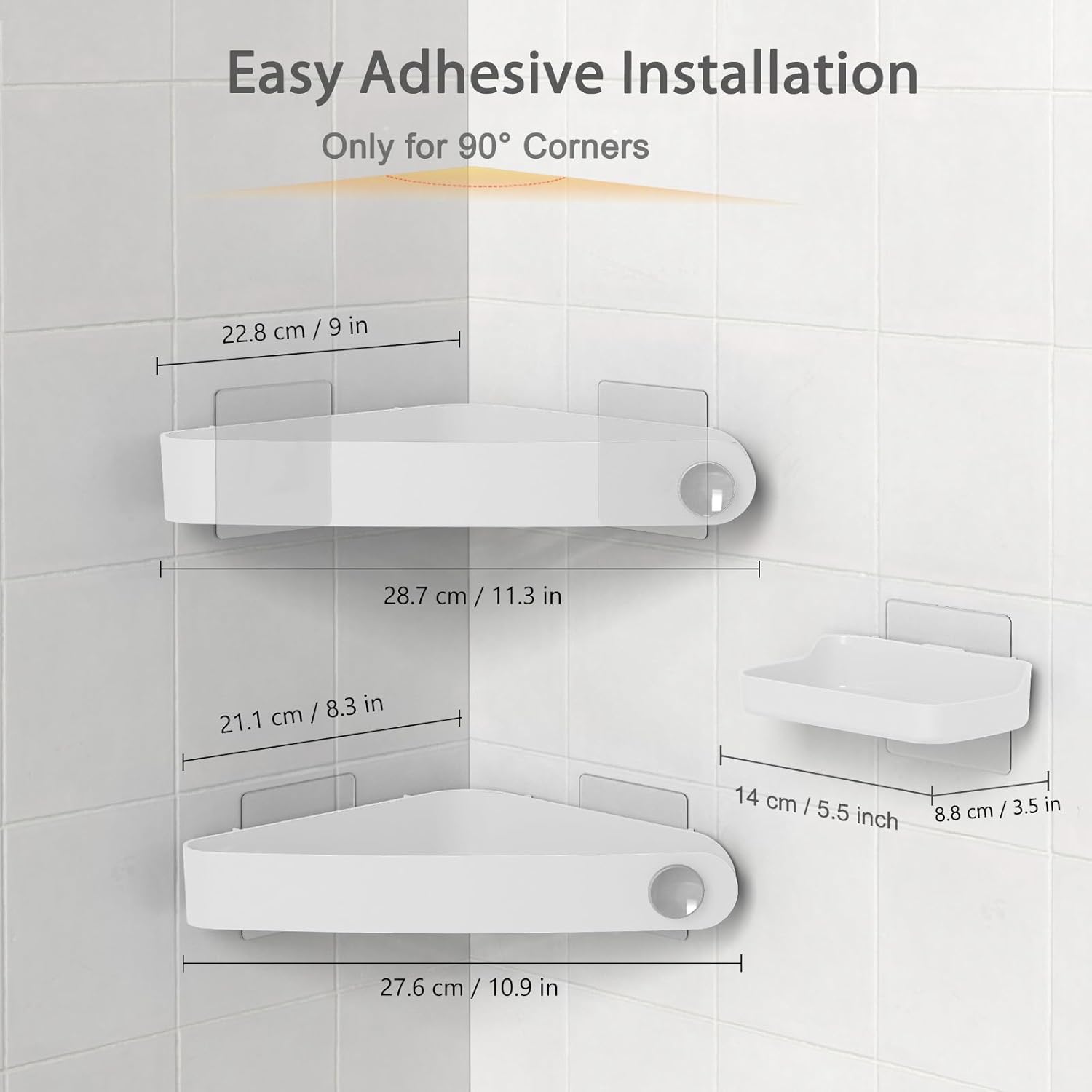 Sotfamily Shower Caddy Corner, Adhesive Corner Shower Shelves for Bathroom Organizers and Storage, Rust Free Plastic Rack for Bathroom Accessories & Decor, 2 Pack + Soap Dish, White