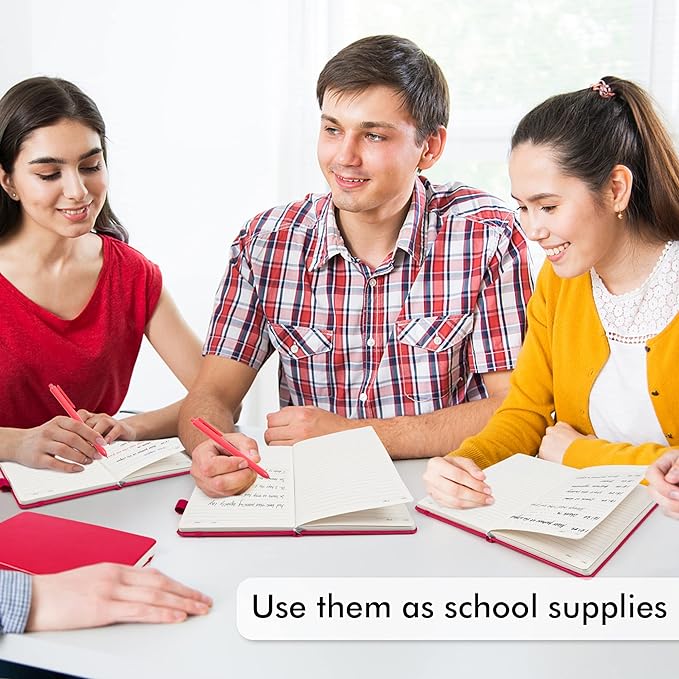 - Feela 12 Pack Classic Ruled Notebooks contains 12 classic berry ruled sturdy cover notebooks and 12 Black Retractable Pens. Each of the notebooks measures 8.3” x 5.1”, which is perfect to carry and easily held by young girls and boys. These black cute pens are customized to be placed in the pen holder, which is pretty convenient.