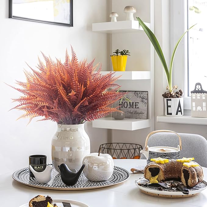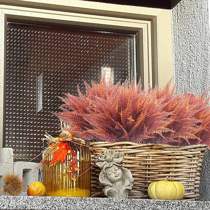 - 🌾🌻🍎【Realistic Fall Ferns】- The bright orange of fall ferns stems is derived from the natural color of autumn.Warm orange flower arrangements decoration can light up your space, let you feel the warmth of autumn and enjoy the happyness of harvest season.
