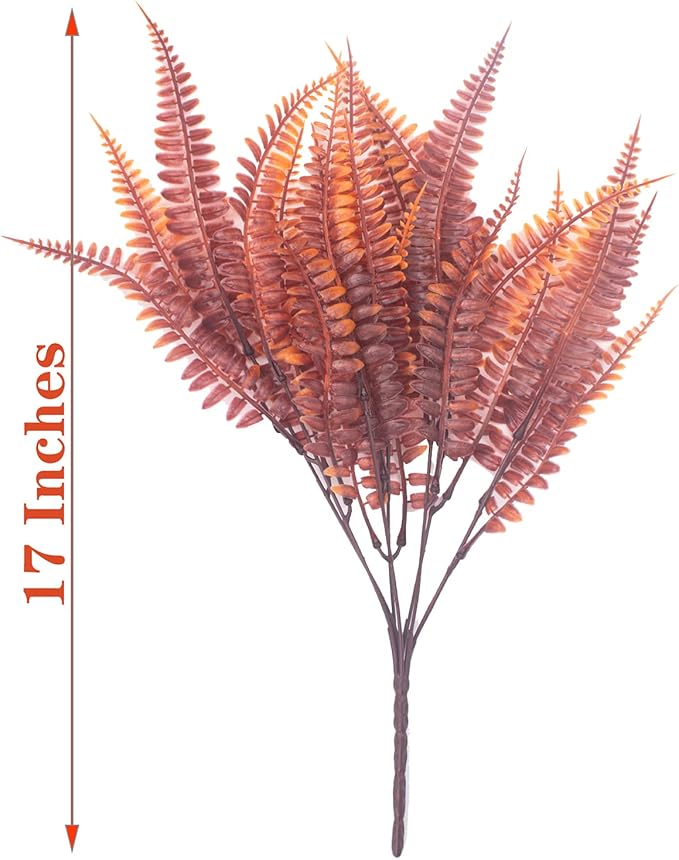 - 🌾🌻🍎【12 Pcs Super Value Set】- You will get 12 Bundles artificial Fall Boston Fern, Each bouquet has 7 stems and bushy leaves. Each measures 17 high x 17" Wide.