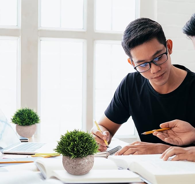 - 【Material】:The Mini Potted Plastic Plants are made of environmentally friendly PE plastic materials, safe for our skin and curious pets, comed with gray paper pulp pots. NOTE: Please don't put the pot in the water.