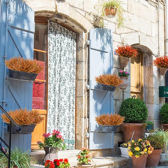 6PCS Artificial Eucalyptus Plants,Fake Boxwood Shrubs UV Resistant No Fade Faux Plastic Greenery for Wedding Bridal Bouquet Indoor Outdoor Home Garden Kitchen Office Table Vase(Fall)