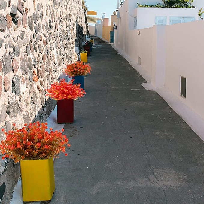 6PCS Artificial Eucalyptus Plants,Fake Boxwood Shrubs UV Resistant No Fade Faux Plastic Bridal Bouquet Indoor Outdoor Home Garden Kitchen Office Table Vase(Fall Orange), Brown Orange