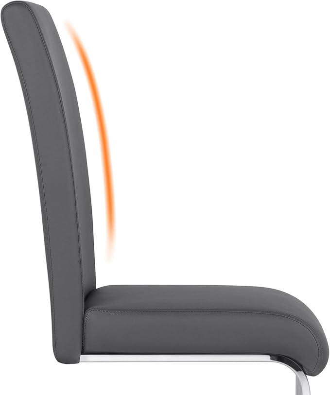 Yaheetech Dining Chairs Set of 6 Modern Faux Leather Upholstered Dining Room Chairs with High Back and Metal Chrome Legs for Kitchen/Living Room/Restaurant, Dark Gray