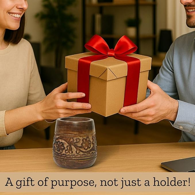 - Aesthetic School Accessories: This Geeky Pen Holder is Solid and Durable as it is Handmade from 100% Eco-friendly Mango Wood. Additionally, Floral Handcarving on the outer circumference and natural wood finish, adds a antique touch to it, making it elegant and decorative.