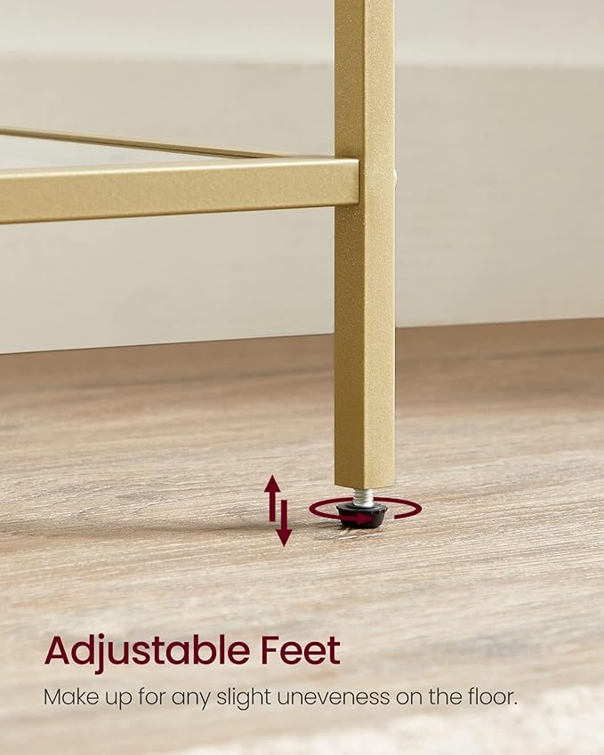 - [Display Your Faves] With transparent glass shelves and a gold-colored frame, this 5-tier shelf boasts stunning modern minimalism. This small shelf allows you to display your greenery, books, and collectibles while elevating the look of your space
