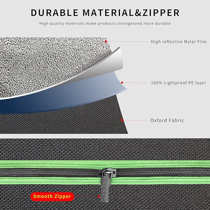 - CREATE OPTIMAL CLIMATE CONDITIONS:The interior of the Garden Grow tent is made of higher density mylar reflective film(Inside)+Extra-thick Oxford Cloth(Exterior). Blocking all light from escaping. Keep the growth room at the right temperature and humidity to allow plants, flowers, fruits and vegetables to thrive.
