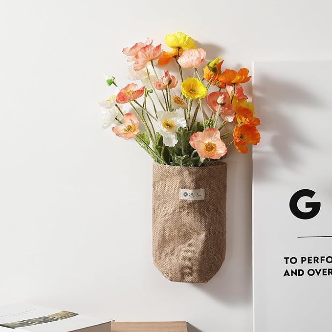 - MATERIAL: Our artificial poppy flowers are made of silk cloth and the stem is made of flexible steel wire. Stem and leaf with flocking coating, which make it looks more realistic and natural like the fresh flowers. So some tiny fluffs may falling when touching them, but it won't affect the appearance