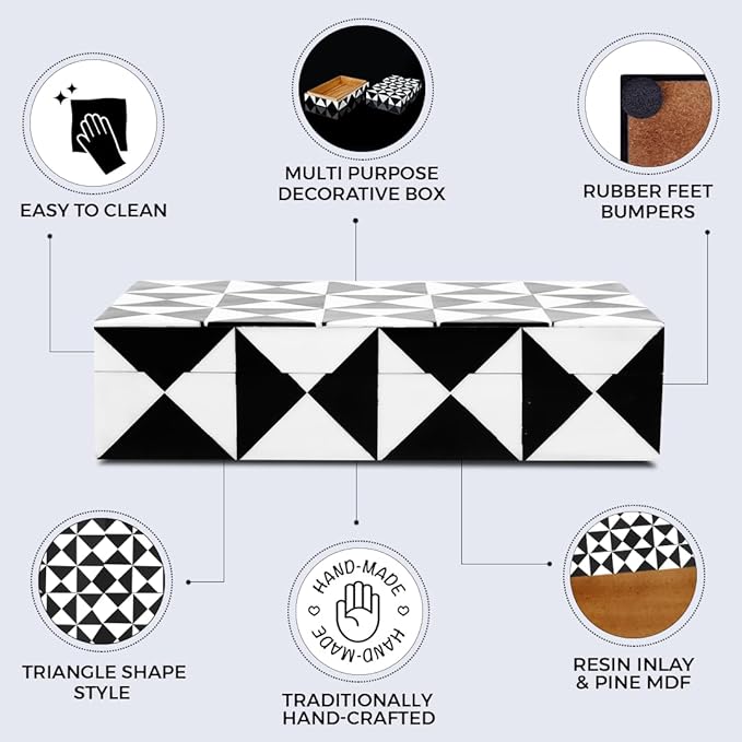 Handicrafts Home Handmade Triangle-B&W Collection Decorative Jewelry Box Organizer – Keepsakes, Trinkets, and Home Decor – Antique Coffee Table Storage, Memory Box, Farmhouse Style Decor, 10x6x2.5
