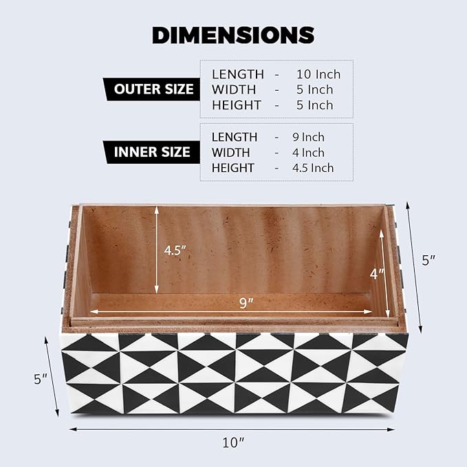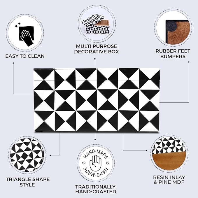 Handicrafts Home Handmade Triangle-B&W Collection Decorative Jewelry Box Organizer – Keepsakes, Trinkets, and Home Decor – Antique Coffee Table Storage, Memory Box, Farmhouse Style Decor, 10x5x5