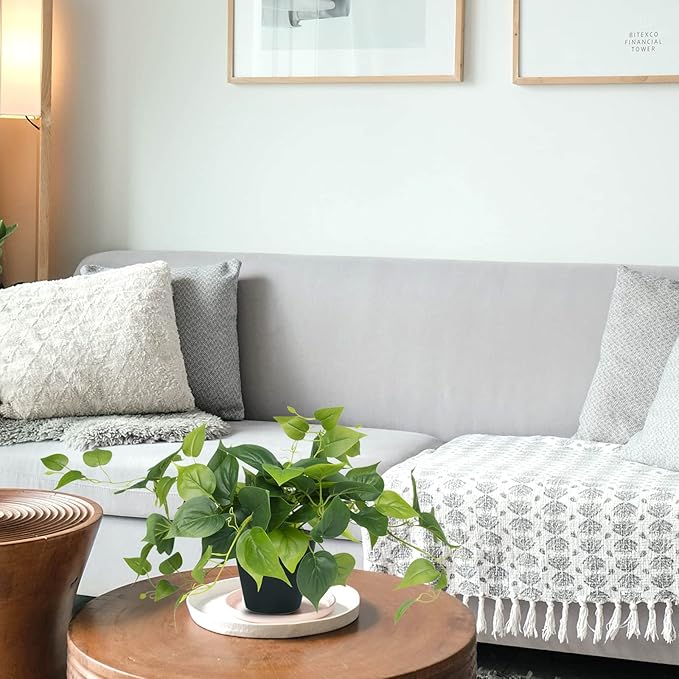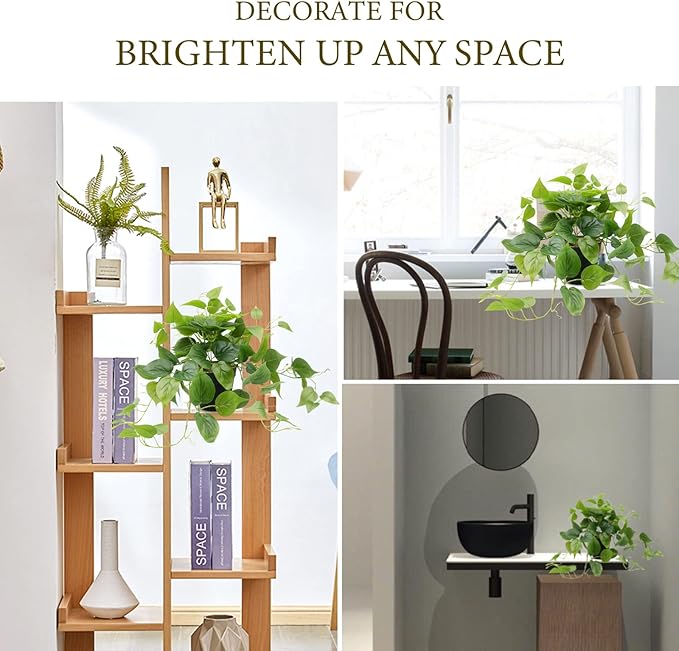 - Natural and Realistic - The leaves texture of faux pothos is clear and full, the “soil” filling is realistic grit dirt/rock look, makes it look as if it is truly growing up out of the pot. Compared with real plants, the faux plants indoor won't give you sniffles.