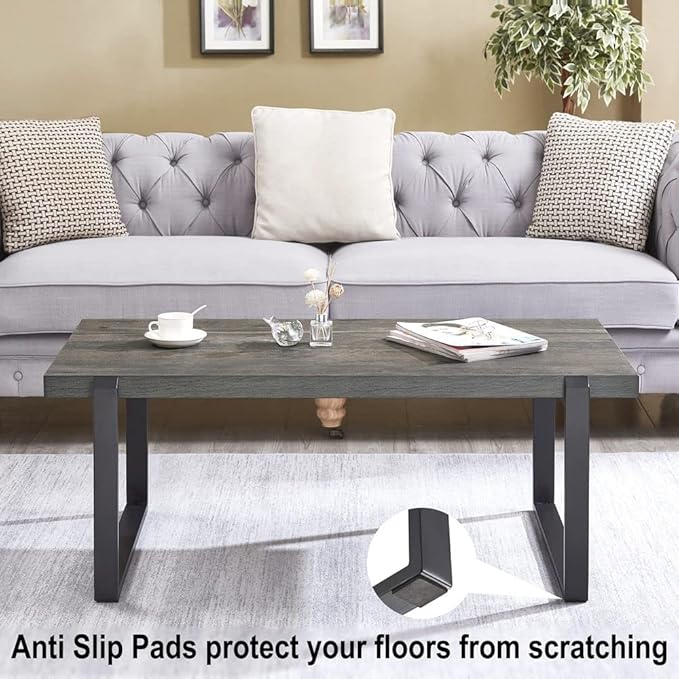 - Modern Coffee Table: Showcasing an industrial grey wood grain finish and black metal frame, this center table merges minimalist design with vintage style, making this small coffee table perfect for small spaces and creating a clean, organized environment