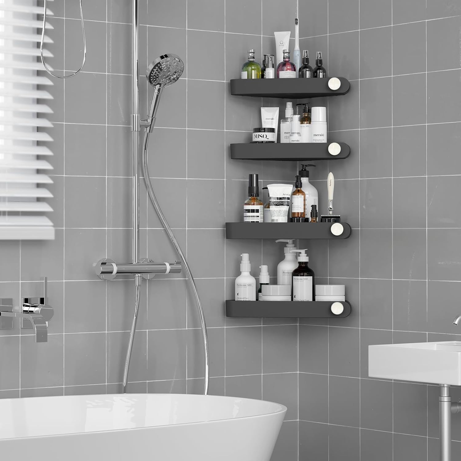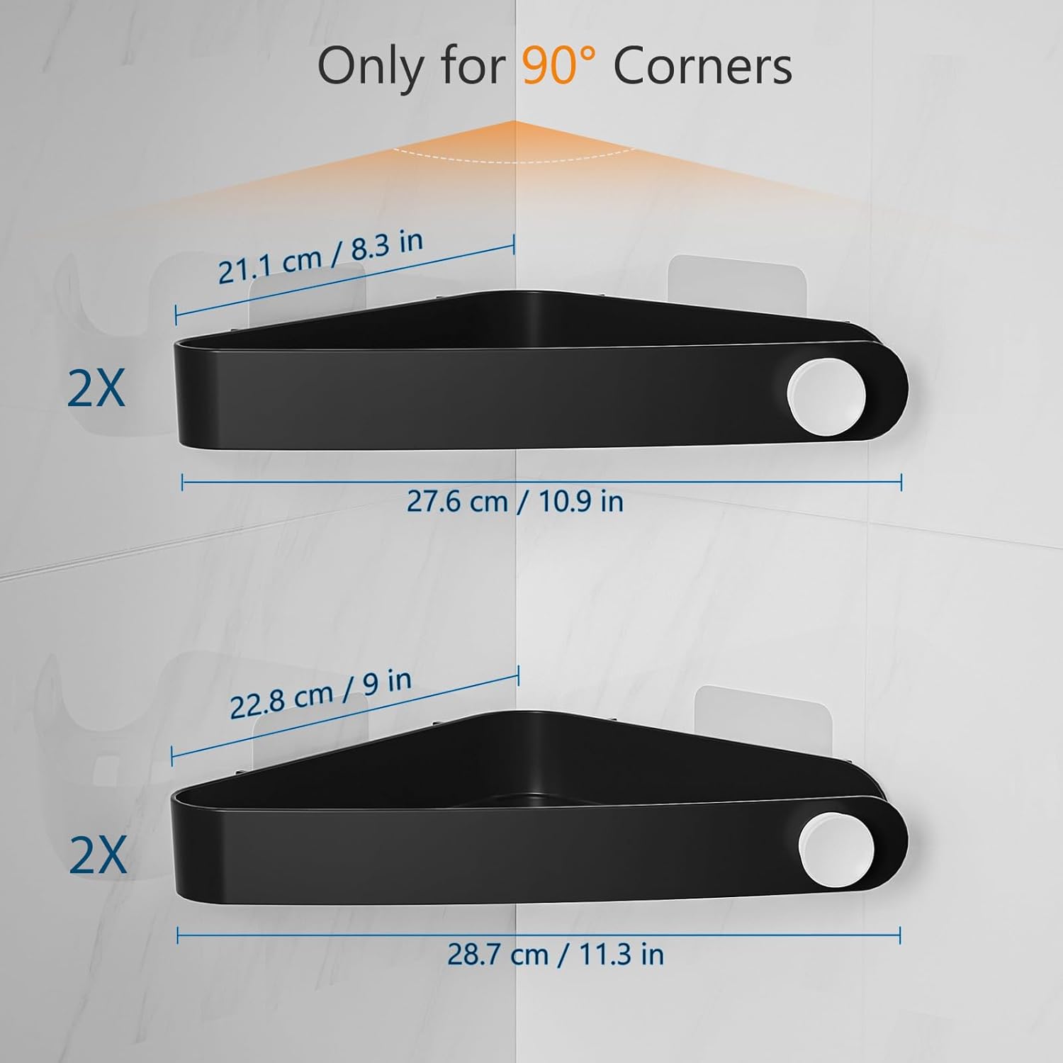 Sotfamily Shower Caddy Corner, 4 Pack Adhesive Corner Shower Shelves for Bathroom Organizers and Storage, Rust Free Plastic Rack for Bathroom Accessories & Decor, Black