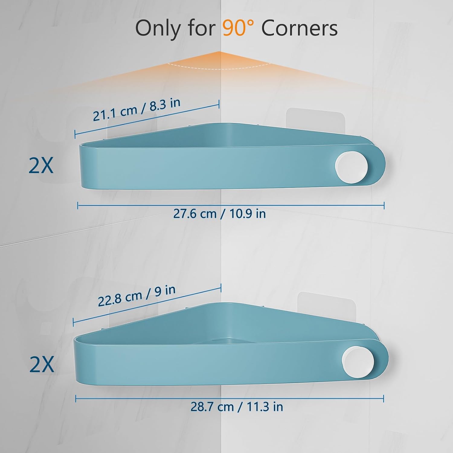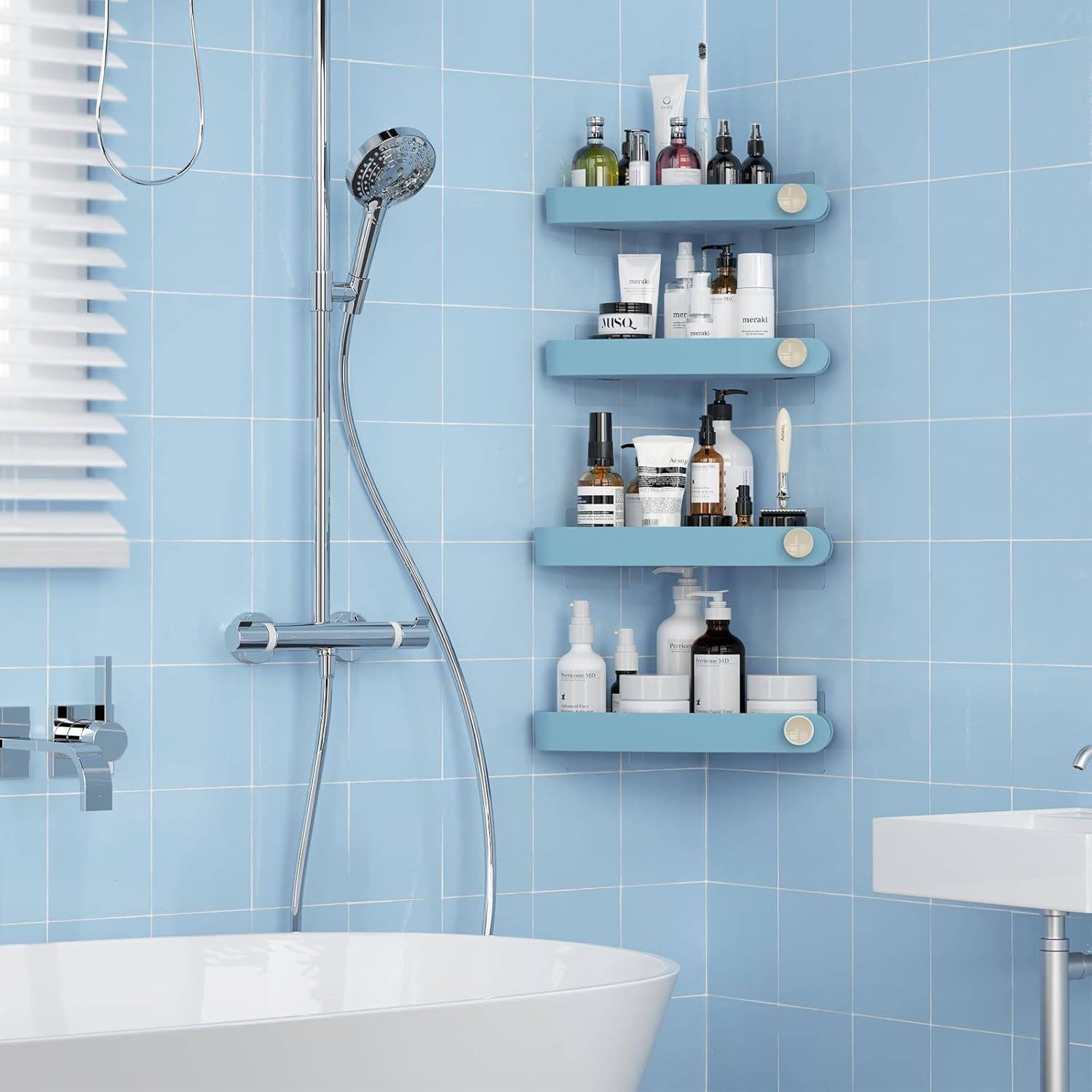 Sotfamily Shower Caddy Corner, 4 Pack Adhesive Corner Shower Shelves for Bathroom Organizers and Storage, Rust Free Plastic Rack for Bathroom Accessories & Decor, Light Blue