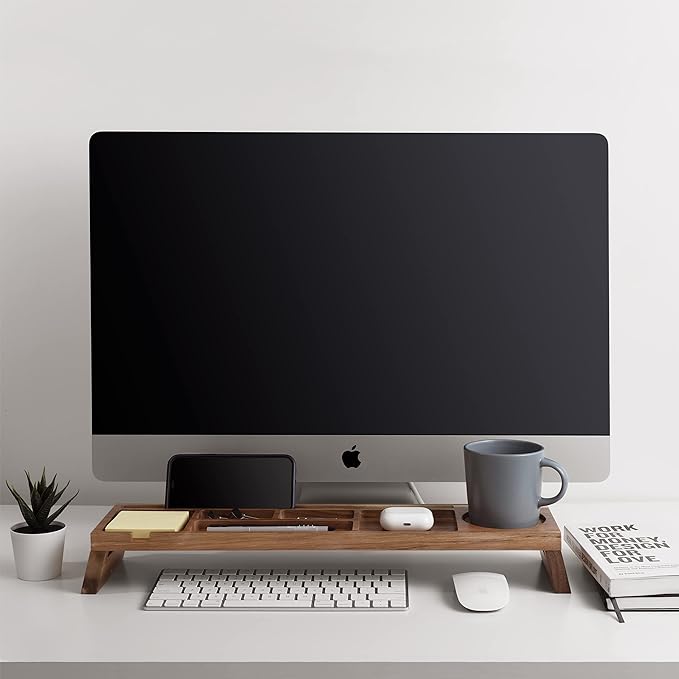 - EXTRA STORAGE UNDERNEATH - Our wooden desktop organizer features a storage area underneath for keyboards, books and more. Maximize your workspace with this wood desktop storage solution. More room for working and creating.