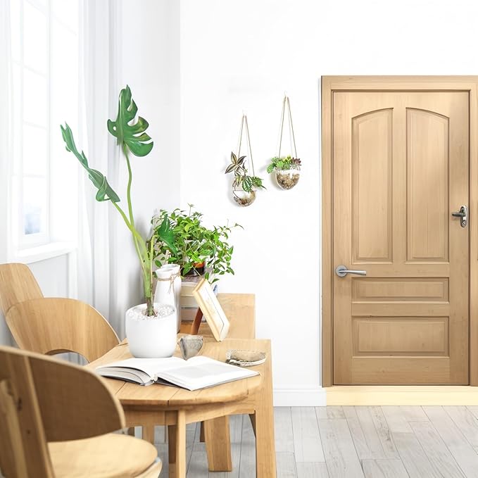 - Elegant & Modern Design: These stylish glass hanging planters add a touch of sophistication to any space, suit for home, office, or garden decor. Cute round plant terrariums, flat on the beside so it will sit flat on a flat wall surface. Hanging design create a beautiful display for air plants, succulents, or hydroponic plants and you don't have to worry about your pet breaking it
