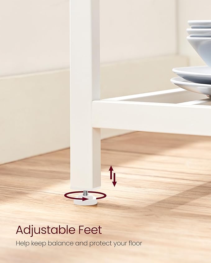 - [No Wobbles, No Scratches] Say bye to small annoyances—the adjustable feet prevent the kitchen island from wobbling on slightly uneven floors and protect your floor from unwanted scratches