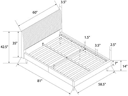 - MODERN PLATFORM BED FRAME: Mid-century modern design meets vintage luxury to create a posh bedroom piece. Designed with a tight channel tufted headboard and brass tone tapered metal legs. Full: 60"W x 81"D x 42.5"H. Max weight limit: 800 lbs
