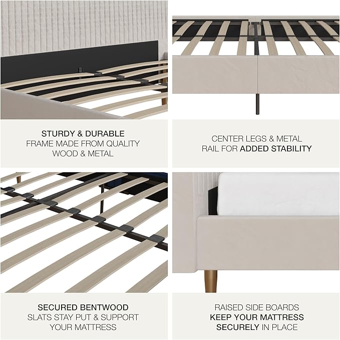 - COMFORT AND STYLE: Sink into a plush, foam-padded tufted headboard that extends all the way down to the slats. Raised edges ensure your mattress stays put, preventing any unwanted slipping or sliding. Blends seamlessly with all bedroom decors