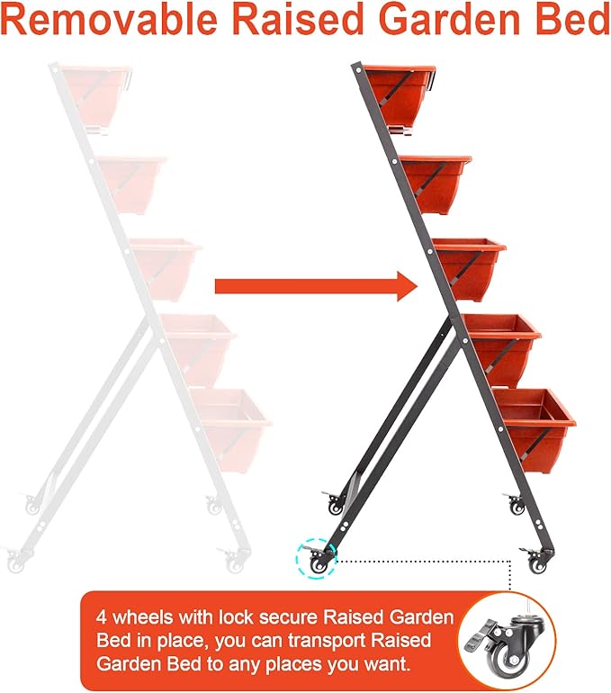 - 【Easy to assemble & Move】:Easy to assemble,you can install it according to the instructions, and the installation tools you need are included in the package.4 wheels with lock secure Raised Garden Bed in place, you can transport Raised Garden Bed to any places you want.