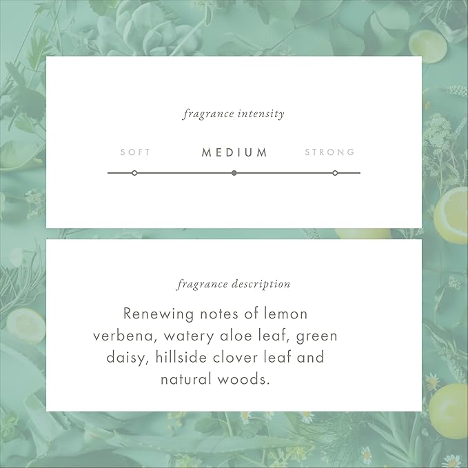 - YOU LIE IN A SPRING-FRESH MEADOW OVERLOOKING A LUSH VALLEY BATHED IN FULL, CLEAR SUNLIGHT. The surrounding world buzzes with life and rebirth. Earth’s perfume is that of Green Clover and Aloe, with its aromas of bright, green daisy, lemon verbena, fields of clover, and inviting woodsy notes. It's at once invigorating and calming—as a day spent in nature often is.