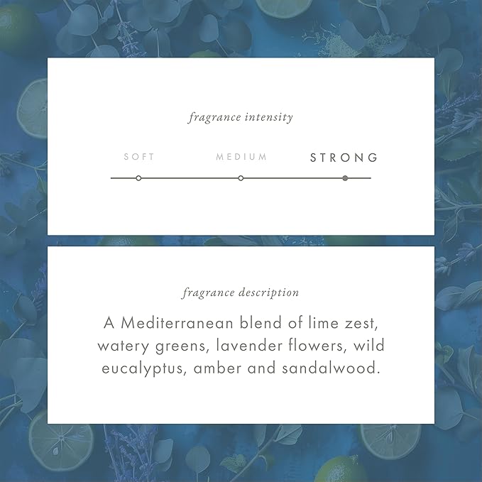 - CERULEAN SEAS HUG MEDITERRANEAN SHORES DOTTED WITH PASTEL HILLSIDE TOWNS. Here it’s always warm and sunny. Everything from the salty air to the sumptuous society is breezy and breathtaking. The scent of bright lime and watery greens mingle with sweet, herbal lavender, refreshing eucalyptus, and the woodsy perfume of sandalwood. Breathe in the allure of the Amalfi Coast—you may never want to leave.