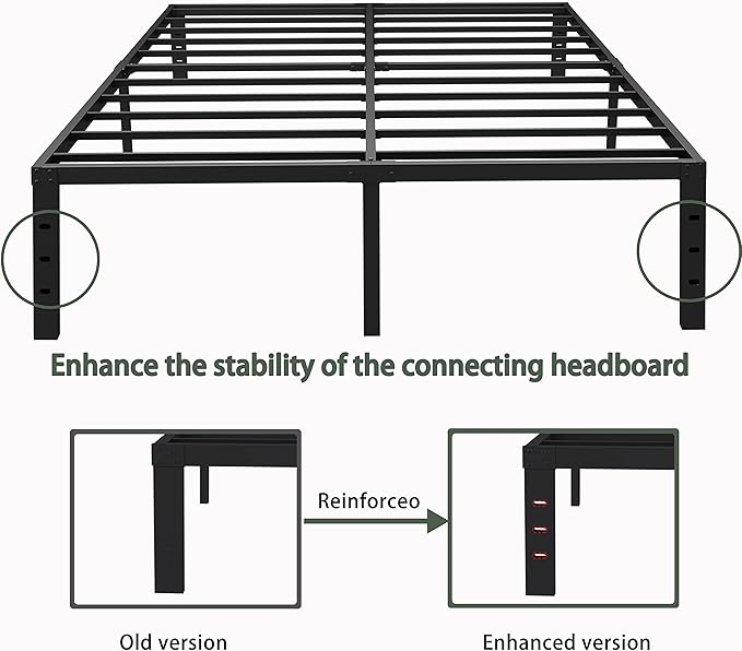 18 Inch Queen Bed Frame Metal, Platform Bed Frame Queen Size No Box Spring Needed, Easy Assembly, Heavy Duty, Noise Free