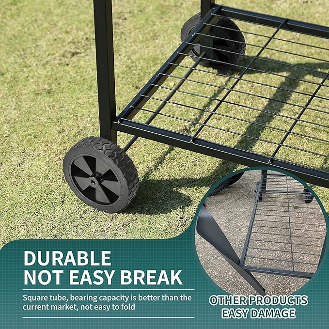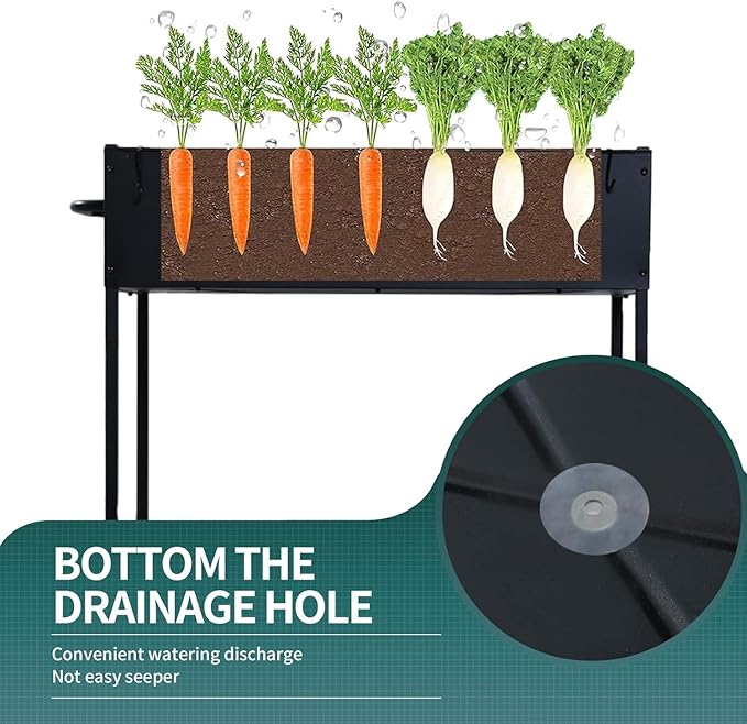 - Raised Garden Bed: Sturdy metal construction with square iron table legs for sufficient support and durability.
