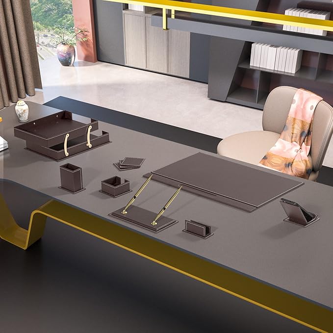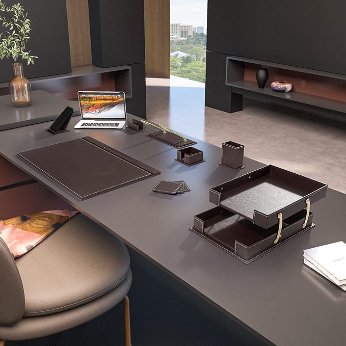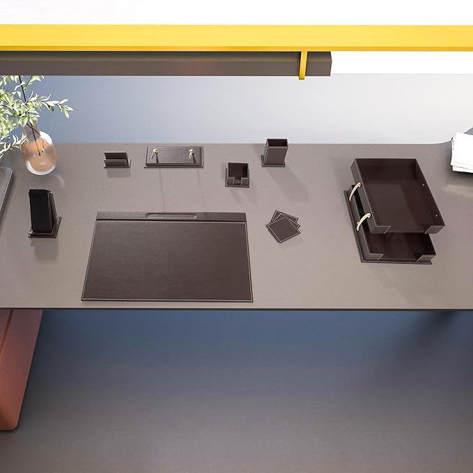 MOOGCO Bonded Set - Desk Accessories - Leather Desk Organizer - Bonded Leather Set - Office Desk Accessories - Home Office Accessories - Desk Supplies - Leather Desk Set - Office Accessories