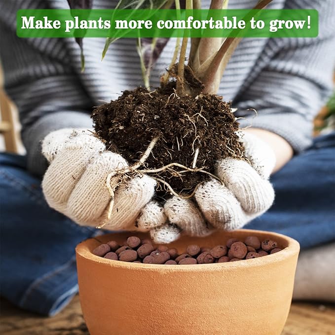 - Excellent Drainage & Aeration: The porous structure of clay balls for plants provides plants excellent aeration and drainage, ensuring that the root system is not saturated by over-watering, while also providing the right amount of oxygen to the roots, improving root circulation; The increased airflow also helps regulate soil temperature, allowing plants to grow comfortably