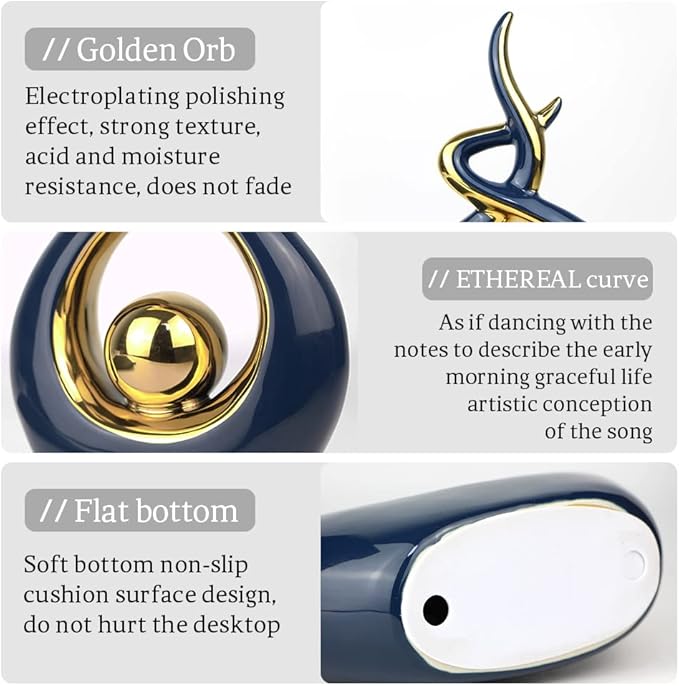 Norrclp Home Decor Modern Abstract Art Ceramic Statue Table Decorations for Dining Room Living Room Office Centerpiece (Blue and Gold, Small), Blue,gold