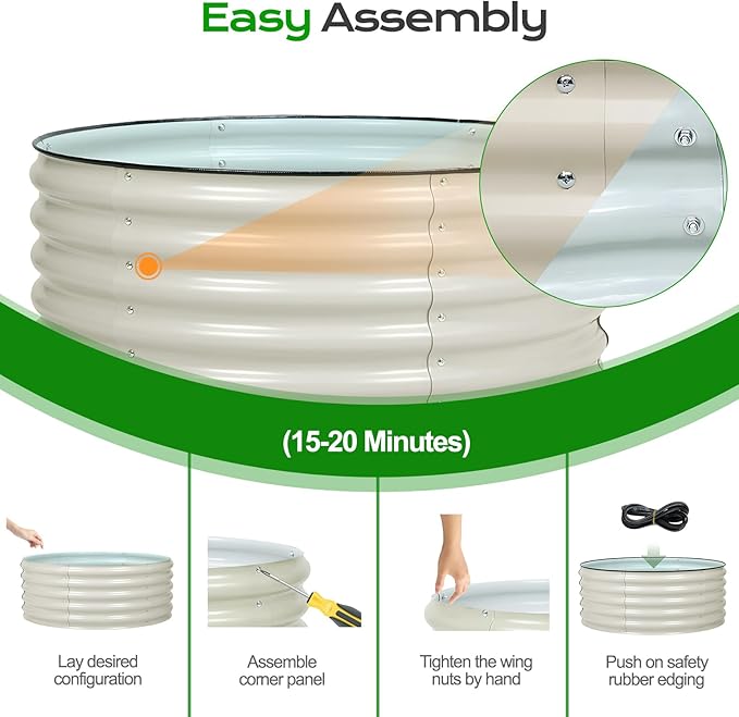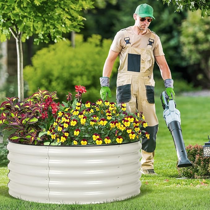 - Premium Material: This 17-inch tall circular raised garden bed is crafted from galvanized steel, featuring a zinc coating that protects the steel from rust by sacrificing itself, requiring minimal maintenance, offering a longer lifespan, and ideal for humid environments