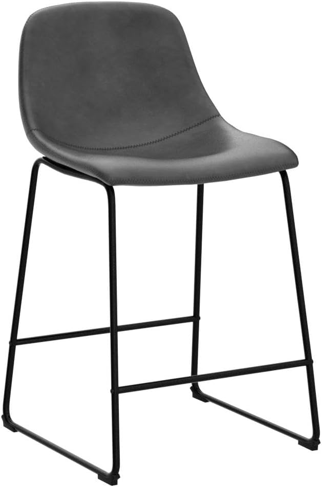 Rfiver Pu Faux Leather Bar Stools Set of 2, Industrial Pub Barstools with Back and Footrest, Modern Armless Bar Height Stool Chairs (Grey, 24" Counter Chair x2)