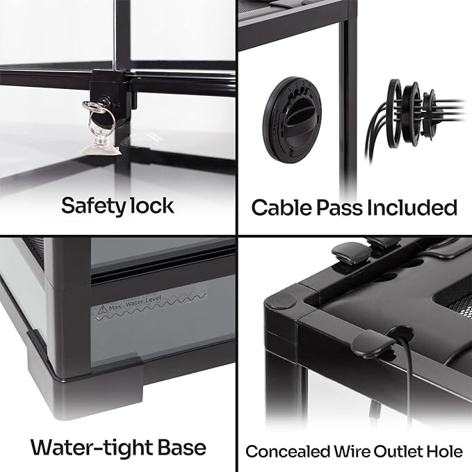 - 【Raised Bottom Frame】: This reptile tank has 8 inch deep base, waterproof bottom makes this tank can be used as rainforest tank. Raised bottom frame in order to fit a substrate heater.
