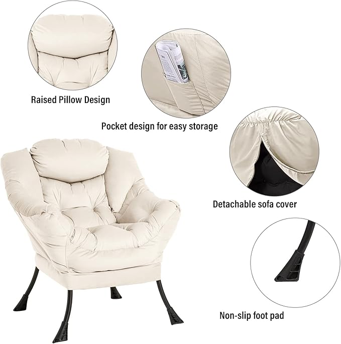 - STURDY & STABLE: The lazy sofa chair features the strong steel frame with powder spray coating. And it also has a middle tube to well support the whole chair. In addition, the lounge chair has a non-slip foot cover design, which not only protects your floor, but also enhances the overall stability, Allowing you to rest easily on it. Can hold up to 400lbs.
