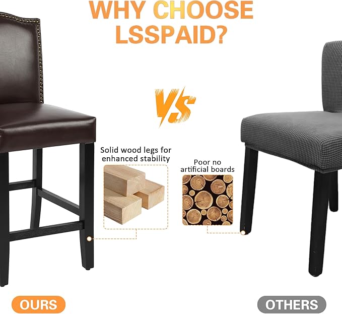 - Easy Assembly & Tips: Counter height stools equipped with installation instructions, quality hardware and installation tools, each counter height chair takes only 10-15 minutes to install. When you assemble the chair, you find that the side rungs are tilted. Please swap the left and right front legs and rotate them to the appropriate position for installation. Or contact us and we will tell you of the specific assembly method