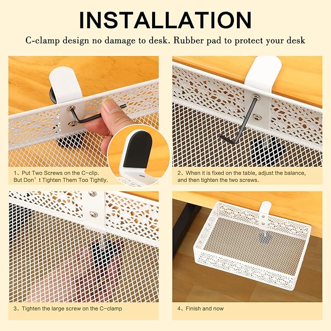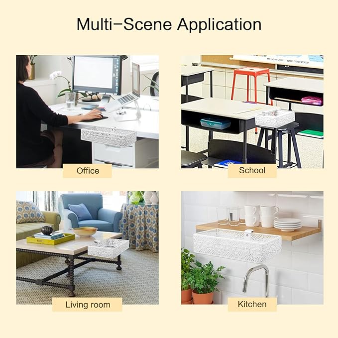 - 【no need to modify the desktop】this under the table storage solution does not need you to drill holes or modify the desktop in other ways. Then, if you want to remove, move, or transfer it to another table, it won't stay holes or marks.