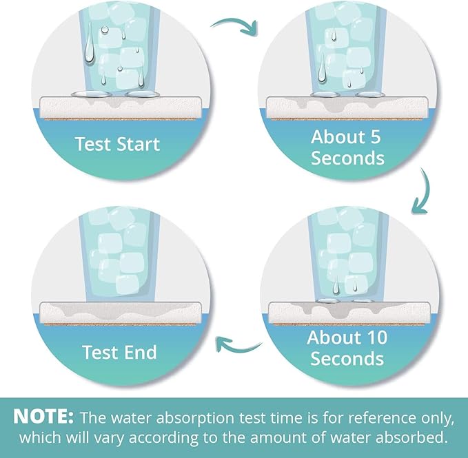 - ANTI WEAR CORK - The back of coaster is cork to prevent the table from getting scratched and worn. And also provide additional gripping to the surface, tightly stick to the desktop, easily handles bumps and drops.