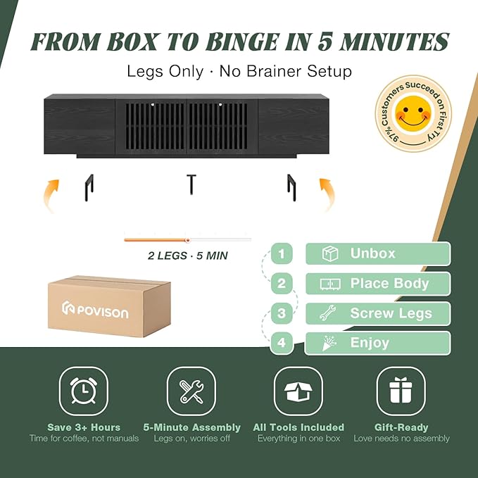 - Stylish & Functional: With slatted doors and black-plated tall cast metal legs, our TV cabinet combines style and functionality. The slatted doors allow for easy remote control signal access to your electronics while ensuring efficient heat dissipation