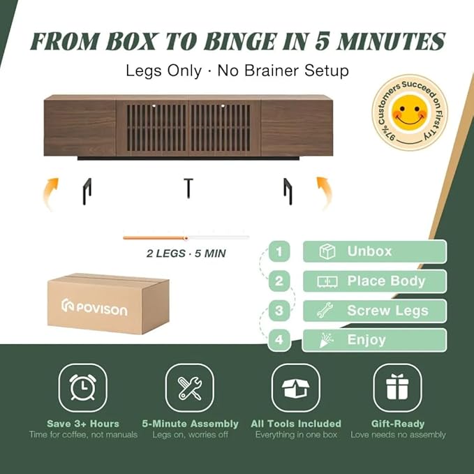 - Fully Assembled TV Console: This slatted wood TV cabinet comes fully assembled, saving you time and effort. No complicated instructions or tools required, upon receiving it, you only need to install the 4 metal Legs of the cabinet