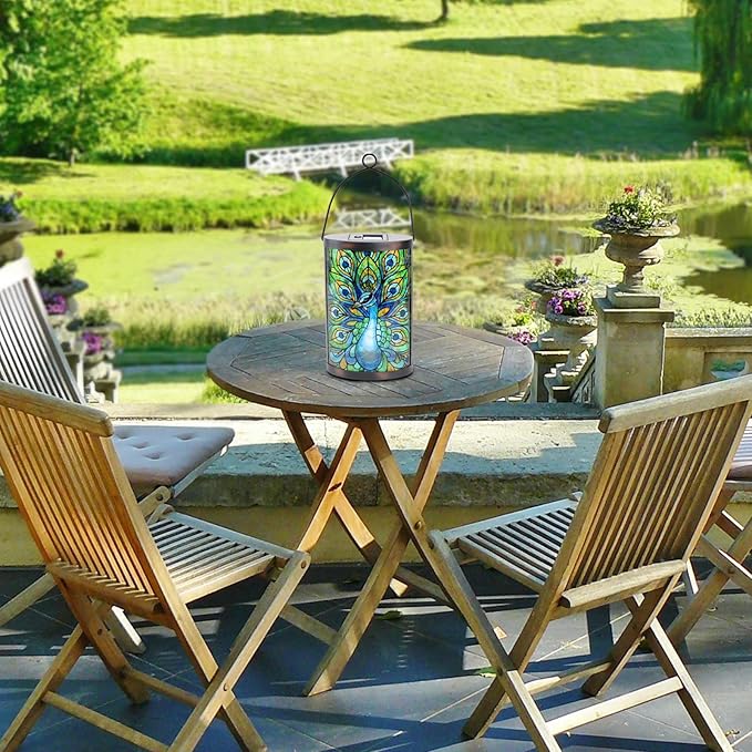 Afirst Solar Lantern Outdoor, Hanging Glass Peacock Solar Lights Waterproof Led Lamp for Garden Yard Tree Desk Decor