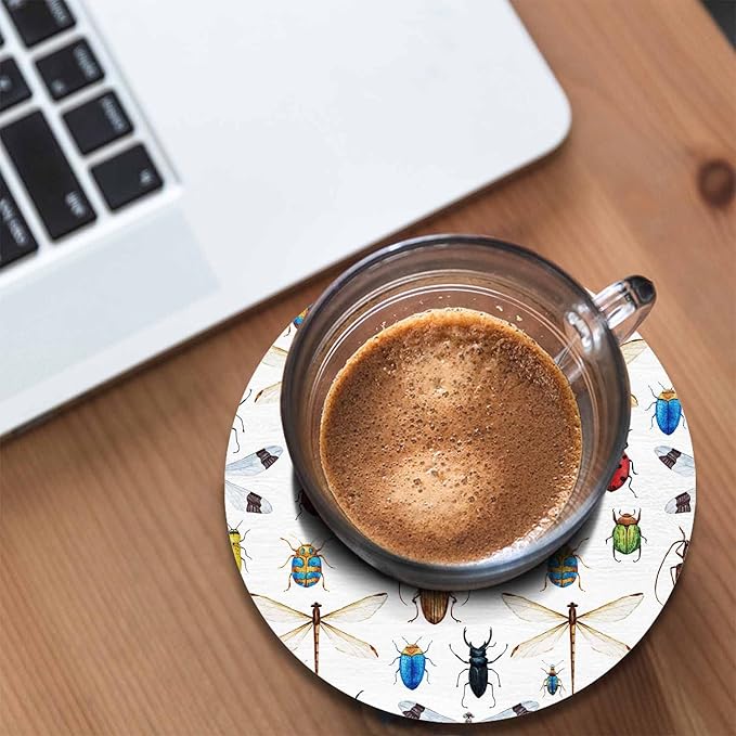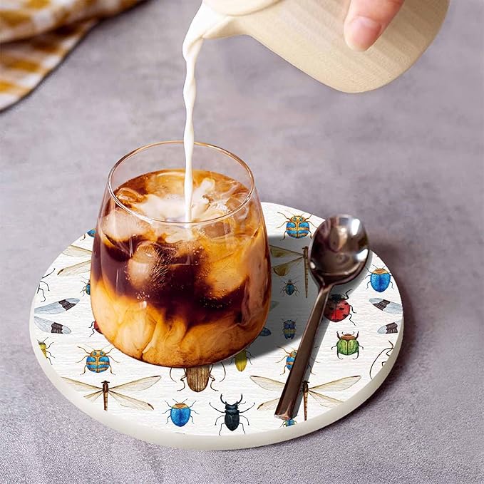 Insect Collection Coasters for Drinks Office Coffee Table Dragonfly Ladybug Wings Cartoon Wild Life Nature Colorful Animal Living Room Decor Set of 2 for Cold Drinks Wine Mugs and Cups 4 Inch