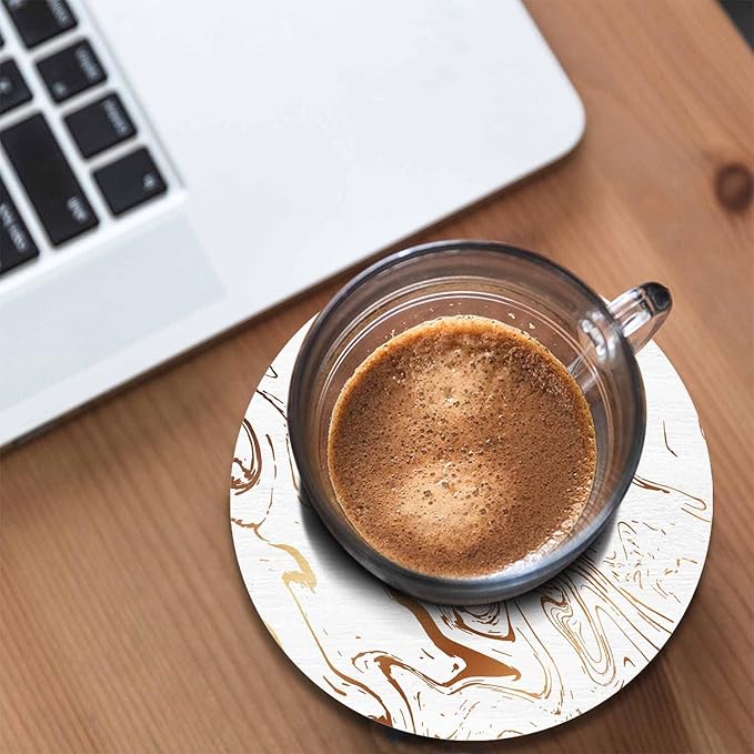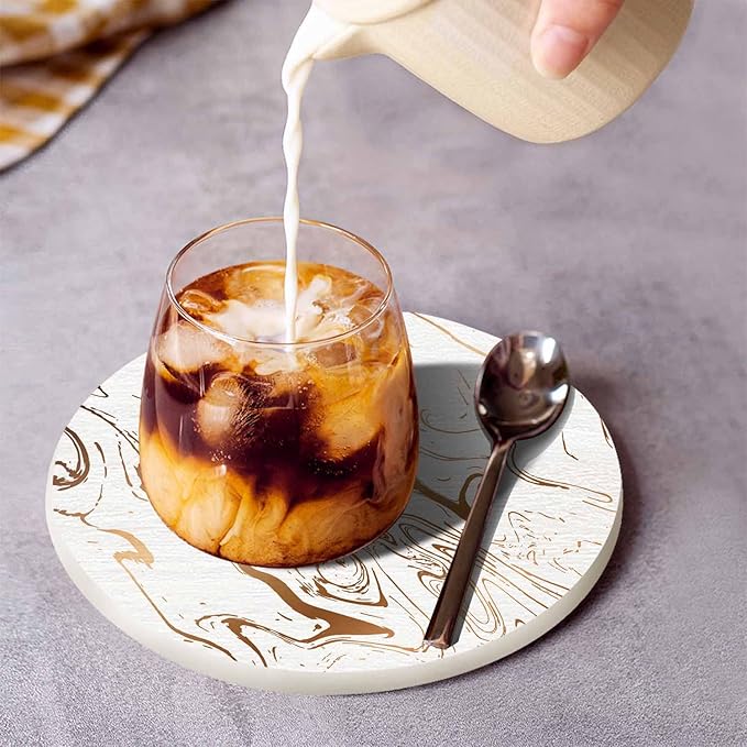 Liquid Marble Texture Coasters for Drinks 2 Pack Water Wave Curve Modern Doodle White Gold Oil Stain Line Tabletop Protection Kitchen and Coffee Table Décor & Accessories,Set of 2